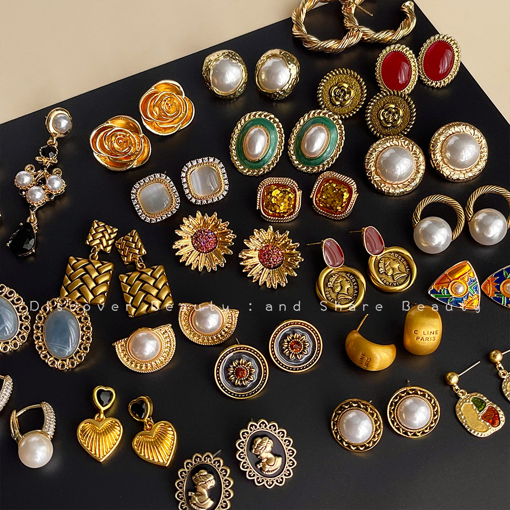 Vintage Fashion Earrings Gold Coin Portrait-S925 Silver Needle