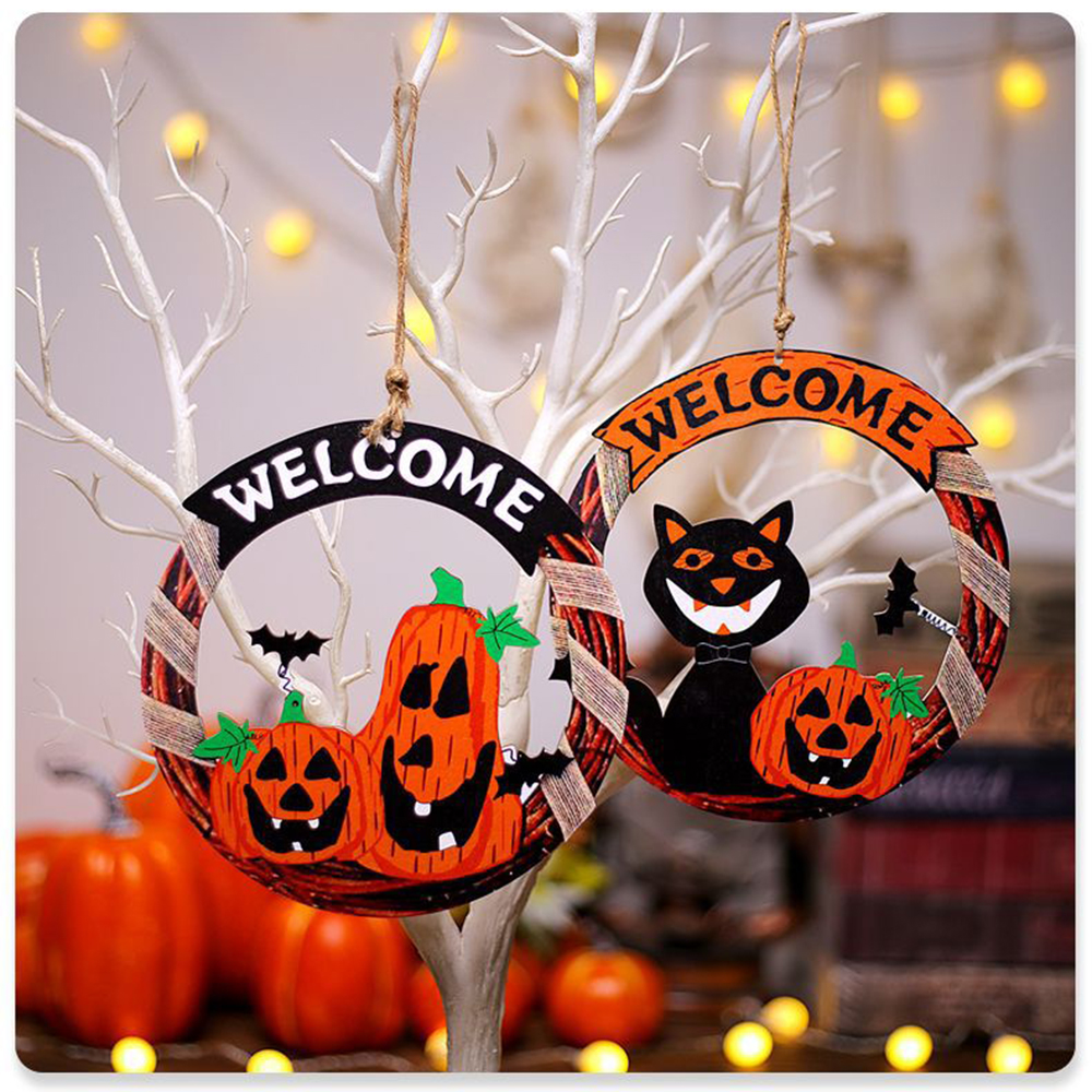 Halloween round door panel wooden pendant ghost festival party scene layout props wholesale