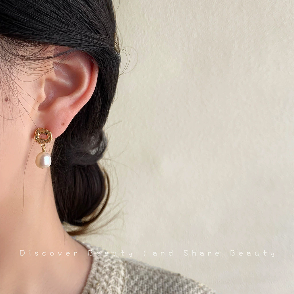Baroque vintage natural pearl handmade earrings with silver needles