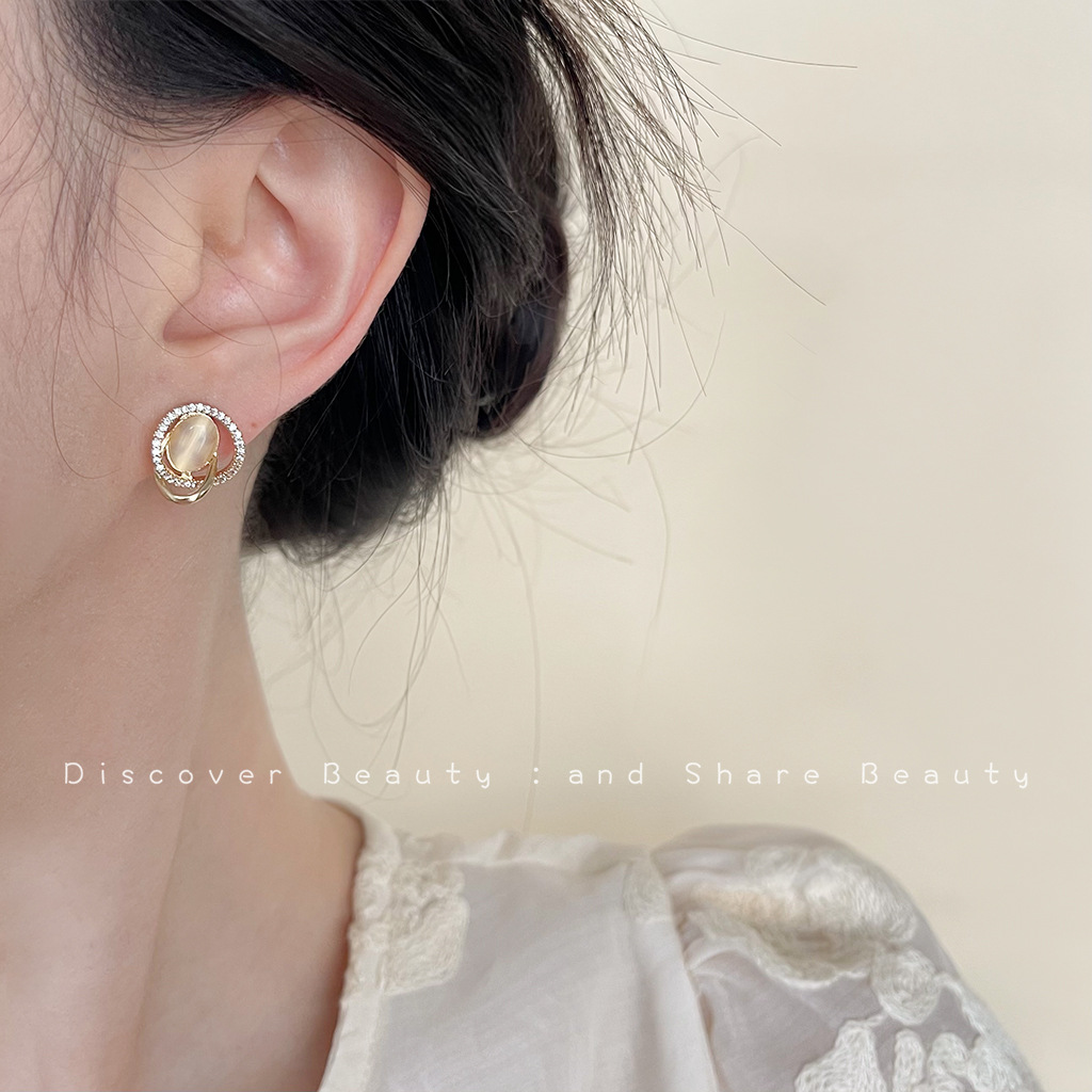 Retro literary haze blue oil drop earrings niche high-end whitening earrings with silver needles
