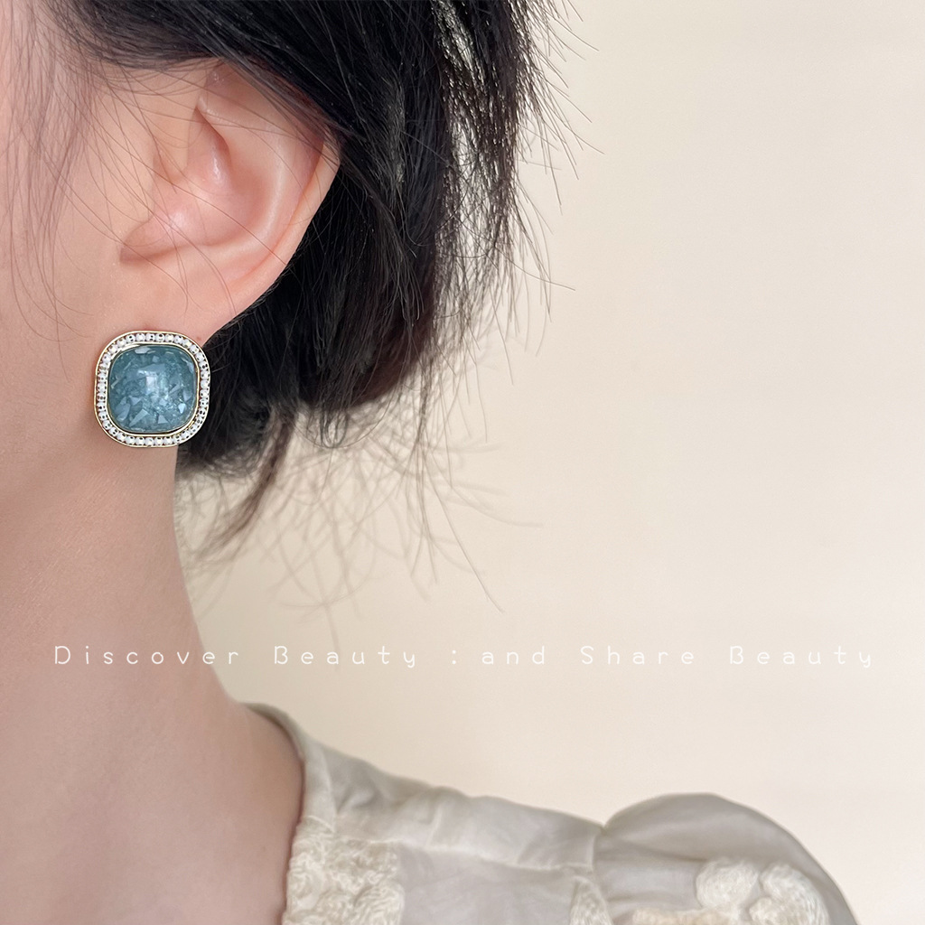 Retro literary haze blue oil drop earrings niche high-end whitening earrings with silver needles